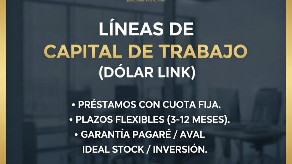 "Excelente atención. Necesitábamos liquidar valores para una compra de stock urgente y Capital Link resolvió todo en menos de 4 horas." — ⭐⭐⭐⭐⭐ Ricardo G., Distribuidora de Alimentos."La transparencia en la tasa Dólar Link nos permitió financiarnos sin las vueltas del banco. Muy recomendables." — ⭐⭐⭐⭐⭐ Marta S., Constructora."Seriedad y rapidez. Un aliado estratégico clave para nuestra gestión de tesorería diaria." — ⭐⭐⭐⭐⭐ Esteban P., Comercio Mayorista.